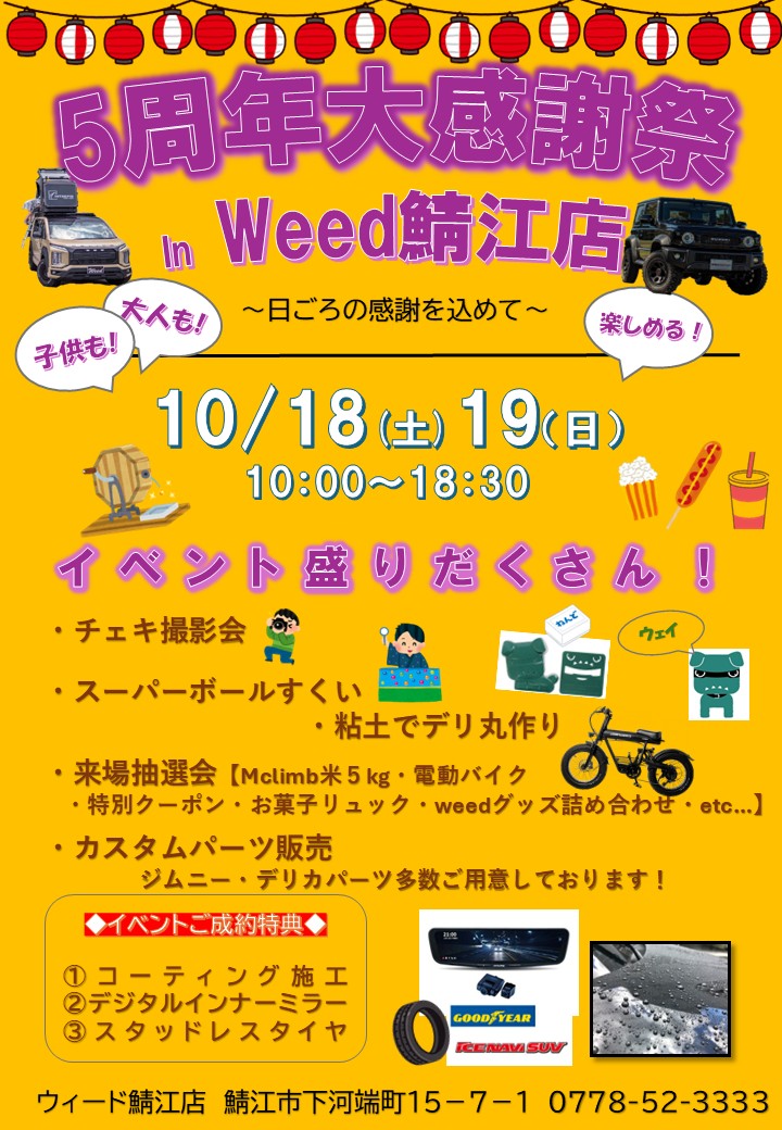 Weed鯖江店 5周年大感謝祭イベント開催致します!