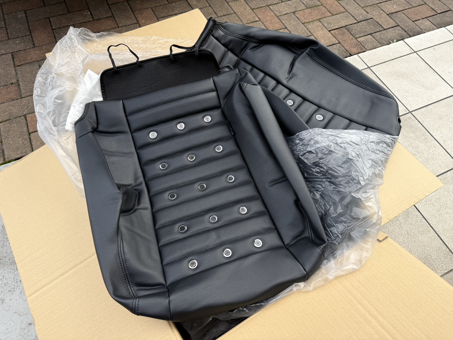ボタン/ブラックのシートカバーがレトロ感あっておしゃれでかっこいい