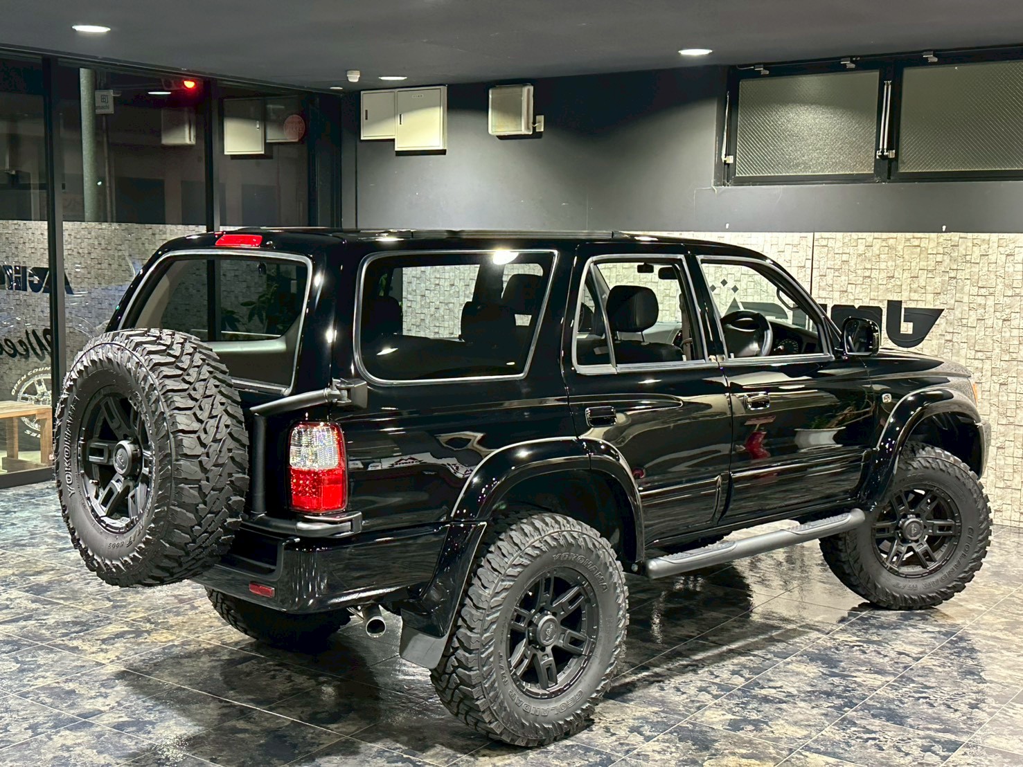通常はフロントバンパー・リアバンパーはメッキ仕様ですが、黒色で統一された漆黒の1台になります