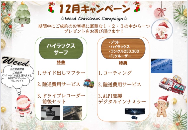 また、只今12月キャンペーン実施中です♪