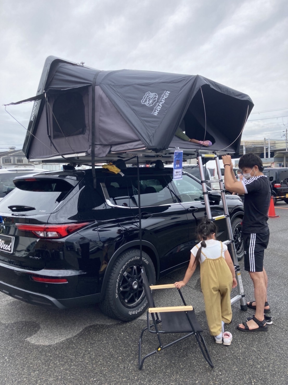 アウトランダーphevの上にikamperのトップテントを乗せて展示しています