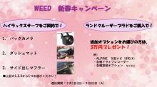 こんにちはーWEED本店です! 3月キャンペーンの紹介 ハイラックスサーフをご契約で!! 1.バックカメラ 2.ダッシュマット 3.サイド出しマフラー 上記の1,2,3から1つをプレゼントします ・・・